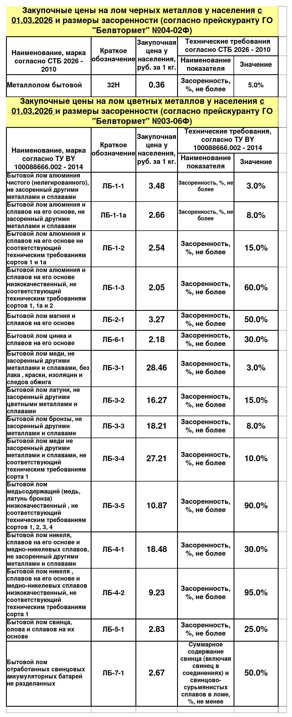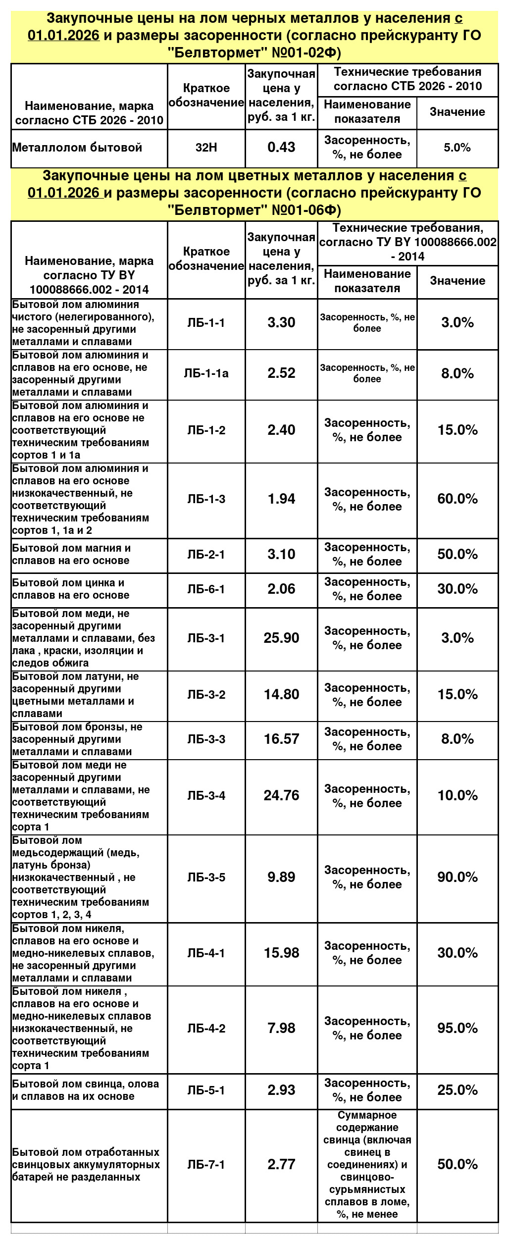 ЗАКУПОЧНЫЕ ЦЕНЫ НА БЫТОВОЙ ЛОМ ЧЕРНЫХ И ЦВЕТНЫХ МЕТАЛЛОВ